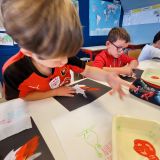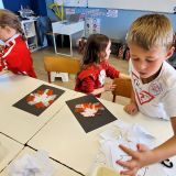 Pour cette journée internationale du lundi 29 septembre, tous les élèves ont revêtu les couleurs du drapeau canadien: rouge et blanc. Ils se sont répartis en ateliers afin de découvrir ce pays. Sur une matinée, ils ont pu participer à deux ateliers au choix: cuisiner des Pancakes ou du sucre à la crème, confectionner des castors en liège, un arbre à sucre, un attrape-rêve, le drapeau canadien, des pochoirs, participer à un grand jeu de l'oie...